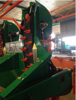 3、马铃薯垄形控制控制技术:现有马铃薯种植机多采用犁式扶土盘或圆盘式扶土盘,其角度不易调整,垄形不规则。该马铃薯种植机突破固有的模式,研制了圆盘式扶垄器,应用范围得到了扩大,使适用行距较目前的600-700mm,提高到700-900mm,适应株距较目前的200-350mm,提高到170-440mm,垄形控制更多样,能够满足不同的农艺要求。